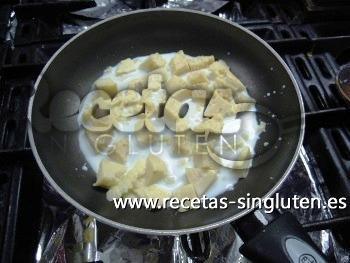 En un cazo diluir el queso con un poco de leche para obtenir una crema densa.