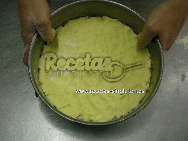 | Con una cuchara extender sobre la base la mermelada de melocotones para obtener una capa uniforme. | |